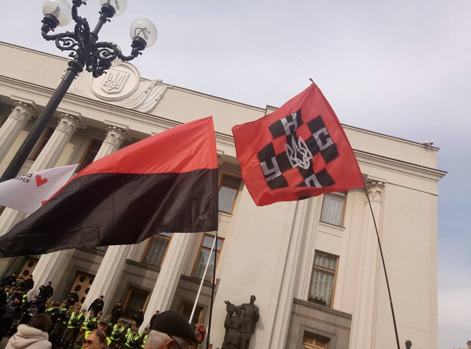 Нардеп-комбат Семен Семенченко попросил оставить только красно-чёрные и желто-синие стяги, что бы акцентировать внимание на том, что объединяет протестующих.