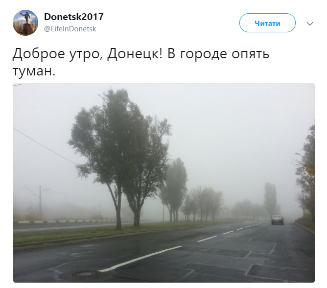 Туман туман в пятницу наблюдается и на оккупированных территориях Украины. В частности, в сети появились фото из Донецка.
