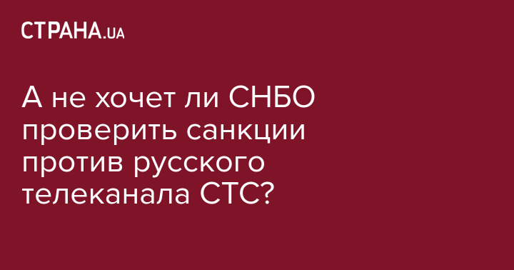 Тут СНБО хвастает, что проверит выполнение своих санкций по передерибану надро-лицензий. Никто не знает, когда санкции СНБО против русского телеканала СТС проверят?