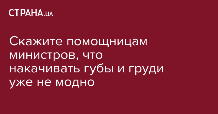 А можно как-то сообщить помощницам министров, что весь мир уже лет десять как откачал все из губ и сисек? Все модные журналы опубликовали фото знаменитостей с имплантами до и без имплантов после и забыли.
