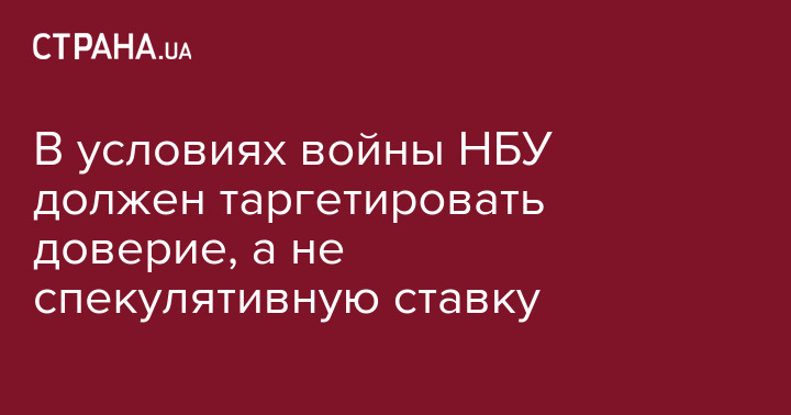 В условиях войны, НБУ должен таргетировать доверие, а не спекулятивную ставку под 25%...