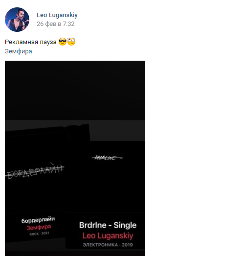 Об этом он написал на своей странице в "ВКонтакте" 26 февраля - в день выхода альбома Земфиры.