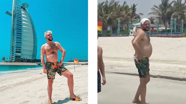 Известный российский эстрадный певец Филипп Киркоров опубликовал в своем Instagram-аккаунте фотографию, где он стоит на пляже в Дубае, а на заднем фоне виднеется отель Бурдж-эль-Араб. На ней у него подкаченная фигура и артист хорошо выглядит, однако поклонники засняли певца на видео, на кадрах которого его тело выглядит совсем по-другому.