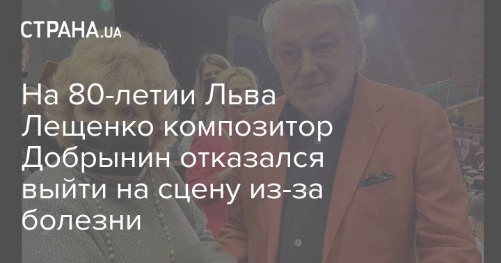 На концерте советского и российского певца Льва Лещенко 1 февраля, посвященном 80-летнему юбилею артиста, композитор Вячеслав Добрынин не поднялся на сцену. 76-летний маэстро просидел весь вечер в пятом ряду зрительного зала московского "Крокус сити холла" и только в антракте с трудом вышел в фойе.