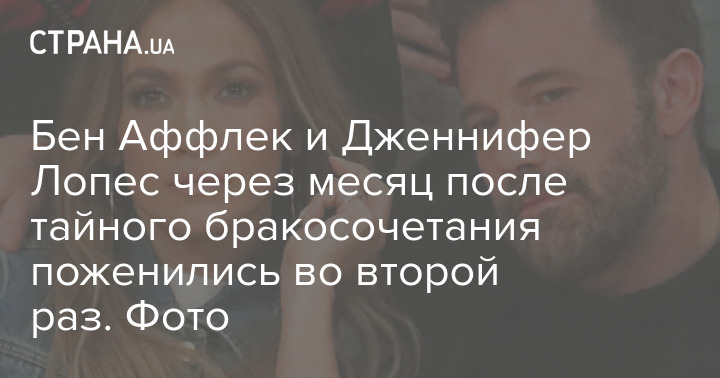 Голливудский актер Бен Аффлек и певица Дженнифер Лопес сыграли вторую свадьбу через месяц после первого тайного бракосочетания. Пара провела церемонию в имении актёра в штате Джорджия в присутствии коллег из списка звезд первой величины и семьи.