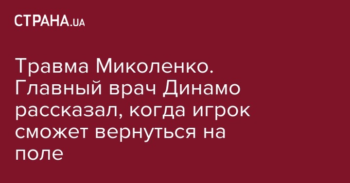 Стали известны сроки восстановления и подробности травмы, которую защитник Динамо Виталий Миколенко получил в матче 16 тура с Олимпиком  и был заменен по ходу встречи. на следующий день после игры, в понедельник вечером Виталий Миколенко прошел магнитно-резонансную томографию.