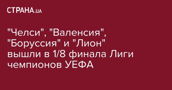 "Челси", "Валенсия", "Боруссия" и "Лион" вышли в 1/8 финала Лиги чемпионов УЕФА