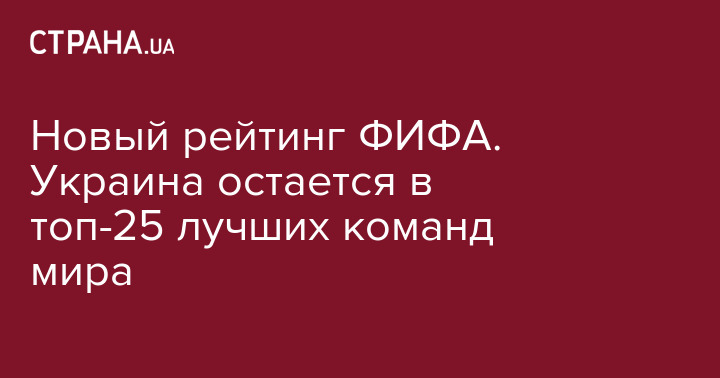 Международная федерация футбольных ассоциаций (ФИФА) обнародовала свежий рейтинг национальных сборных. Сборная Украины занимает в нем 24-е место, сохранив таким образом свою позицию которую занимала и в предыдущем рейтинге. У нашей команды в активе 1 539 баллов.