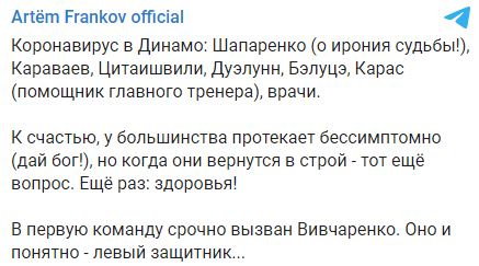 Об этом сообщил главный редактор журнала "Футбол" Артем Франков в своем телеграм-канале.