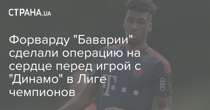 Французский футбольный форвард мюнхенского футбольного клуба "Бавария" Кингсли Коман перенес операцию на сердце. 25-летний спортсмен пропустит от полутора до двух недель тренировок.