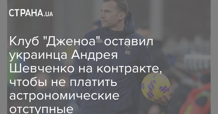 Мы писали, что Андрей Шевченко должен был получить 20 миллионов евро за досрочное расторжение контракта с "Дженоа", поскольку в конце прошлого года стороны подписали контракт до середины 2024 года.