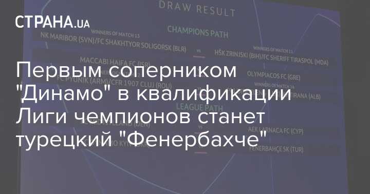 Первым соперником "Динамо" в квалификации Лиги чемпионов станет турецкий "Фенербахче"