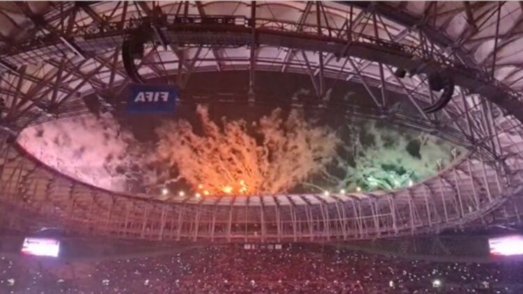 В Катаре открыли стадион, где пройдет финал футбольного Кубка мира. Он построен в виде золотой чаши. Видео