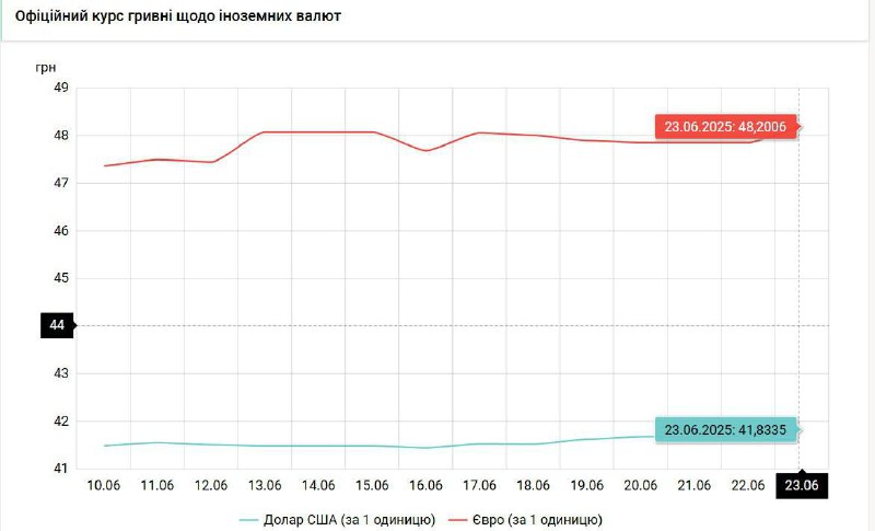 До речі, завдяки курсовому відкату на світовому ринку протягом тижня офіційний курс гривня/долар зріс лише з 47,6926 грн/€ до 47,8590 грн/€, проте вже на понеділок, 23 червня, був зафіксований вище за психологічний рівень — досяг 48,20 грн/€. На цей раз через подорожчання долара, через який ведеться розрахунок: Нацбанк заклав у свій курс співвідношення євро/долар на рівні 1,1522.