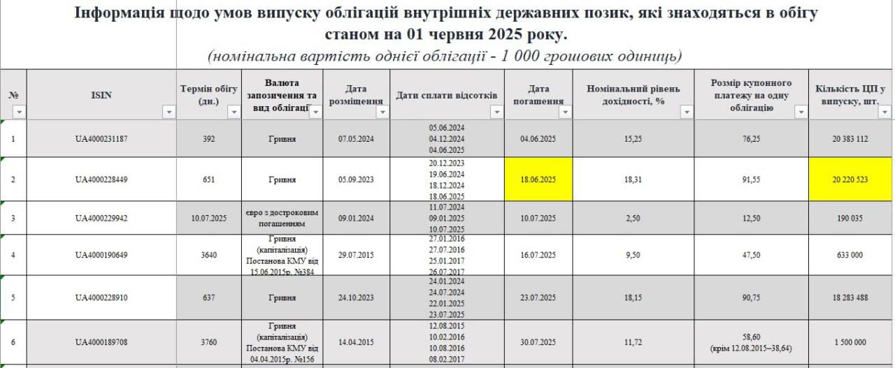 - Збільшення у середу, 18 червня, пропозиції гривні за рахунок великого погашення держоблігацій (ОВДП) на 20,2 млрд грн +1,8 млрд грн відсотків (купона). Багато одержувачів цих коштів поспішили перевести їх в інвалюту.
