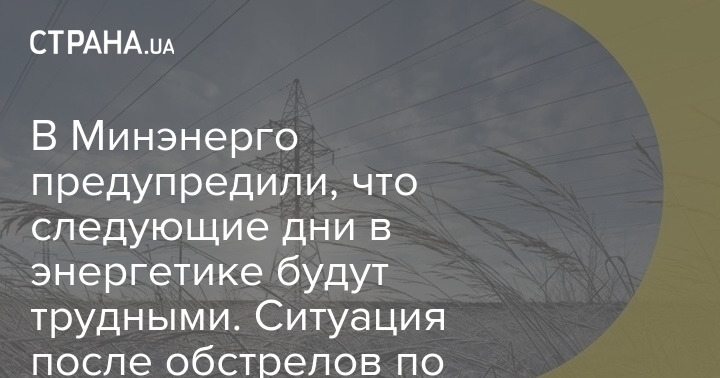 У Міненерго попередили, що наступні дні в енергетиці будуть важкими. Ситуація після обстрілів у регіонах
