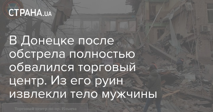 "Влада ДНР" повідомила, що з-під завалів торгового центру, що обвалився в результаті обстрілу, витягли тіло чоловіка.