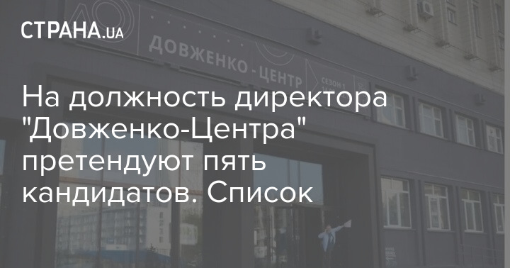 Державне агентство України з питань кіно (Держкіно) назвало п'ятьох кандидатів, які подали документи для участі у конкурсі на посаду генерального директора держпідприємства "Національний центр Довженка Центр", розташованого у Києві.