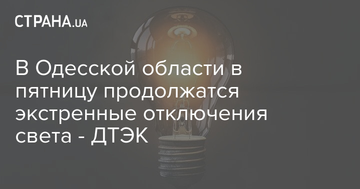 На Одещині в п'ятницю триватимуть екстрені відключення світла - ДТЕК