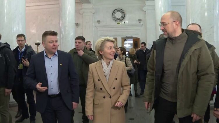 Голова Єврокомісії Урсула фон дер Ляйєн разом із прем'єром України відвідала "Укрпошту" у Києві. Відео