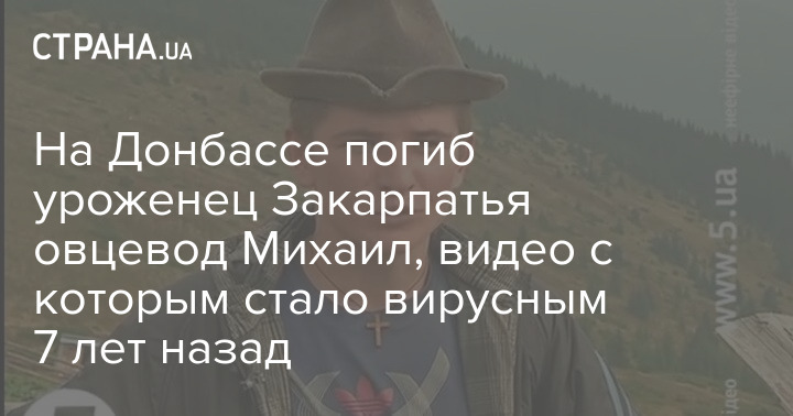 На Донбасі у бою загинув уродженець Закарпаття 27-річний Михайло Кознюк, який став сім років тому широко відомий завдяки сюжету 5-го каналу як "старший вівчар Михайло". Це відео стало вірусним.