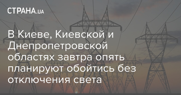 У Києві, Київській та Дніпропетровській областях завтра знову планують обійтися без відключення світла.