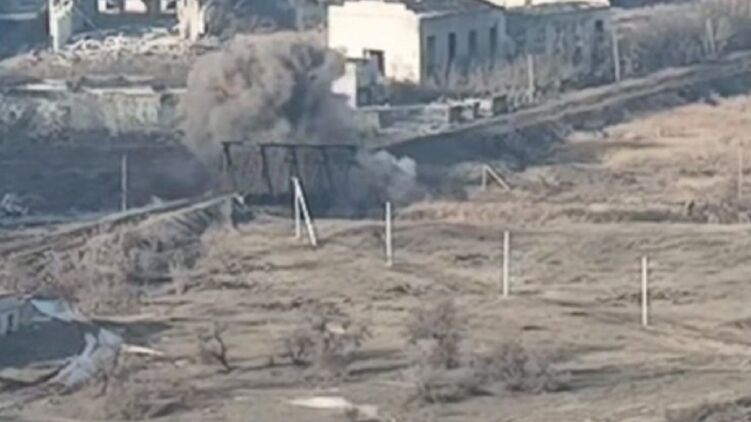 У пабликах раніше з'явилося відео підриву мосту поряд із Бахмутом. Скріншот
