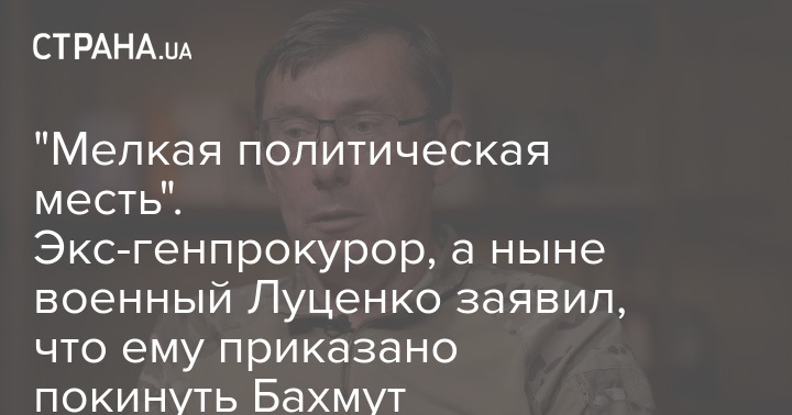 "Дрібна політична помста". Екс-генпрокурор, а нині військовий Луценко заявив, що йому наказано залишити Бахмут