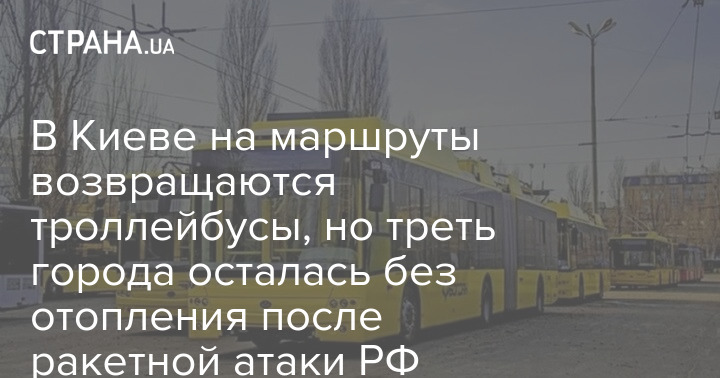 Частина тролейбусів у місті, яка не виїхала на вулиці. через проблеми з електропостачанням, повертається на маршрути. Про це "Страні" повідомили джерела в мерії Києва.