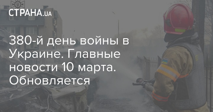 У п'ятницю, 10 березня, в Україні триває вже 380-й день війни з РФ.