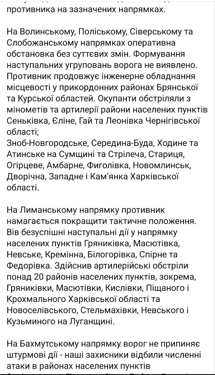 13.36 Командувач Сухопутних військ ЗСУ генерал Олександр Сирський знову відвідав Бахмута і вкотре зробив заяву, що його оборона необхідна для підготовки весняного контрнаступу української армії.
