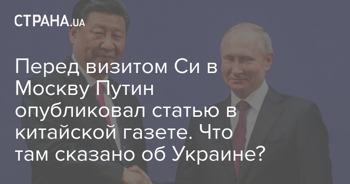 Президент Росії Володимир Путін опублікував напередодні зустрічі із главою КНР Сі Цзіньпіном статтю про російсько-китайські відносини.
