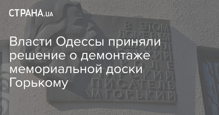 В Одесі міськрада ухвалила рішення про демонтаж меморіальної дошки письменнику Максиму Горькому. Про це повідомляє проект "Деколонізація Україна".