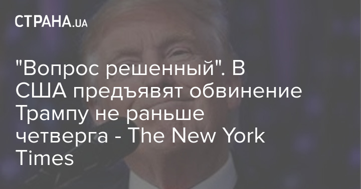 З посиланням на джерела NYT повідомляє, що звинувачення Трампу висунуть не раніше четверга. При цьому в публікації йдеться про те, що саме питання є практично вирішеним, оскільки "прокуратура дала зрозуміти, що звинувачення колишньому президенту, ймовірно, буде пред'явлено".