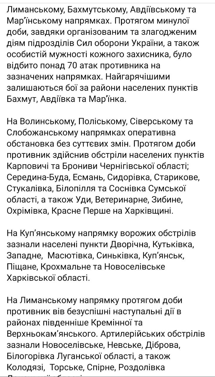 РФ не припиняє штурмувати Бахмут, намагається взяти його під повний контроль, там відбито понад 25 атак.