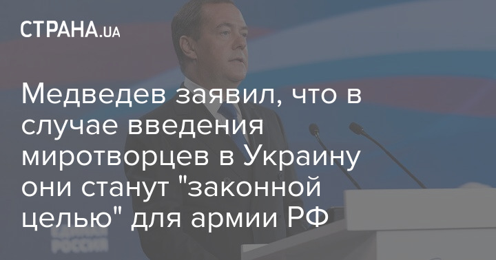 Заступник голови Ради безпеки РФ Дмитро Медведєв розкритикував ідею введення миротворців в Україну. Він заявив, що миротворчий контингент - "прямі вороги" для РФ і будуть "законними цілями" для російської армії.