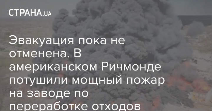 Евакуацію поки не скасовано. В американському Річмонді загасили потужну пожежу на заводі з переробки відходів