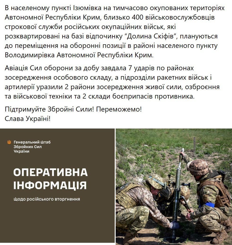 07.43 Головне із ранкового зведення українського Генштабу.