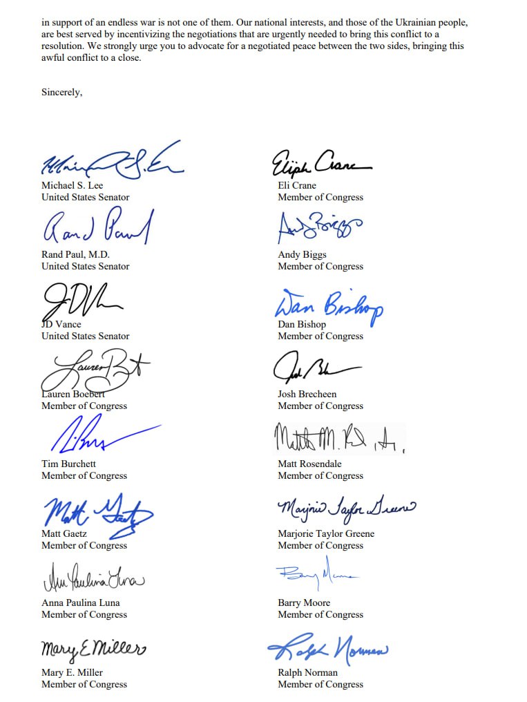 У Конгресі США група з 19 республіканців підготувала спільний лист до президента США Джо Байдена, у якому закликалаприпинити допомогу Україні у такому форматі, як це було й досі.