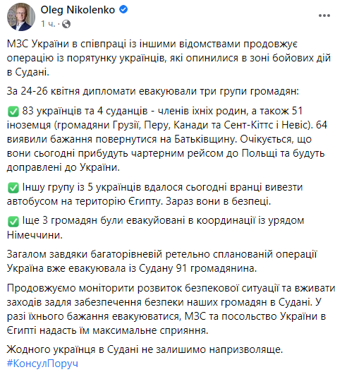 З Судану евакуювали 83 українці. Фото: facebook.com/oleg.nikolenko.50