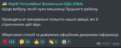 10:25 У Луцькому районі Волинської області місцеві чули вибух.