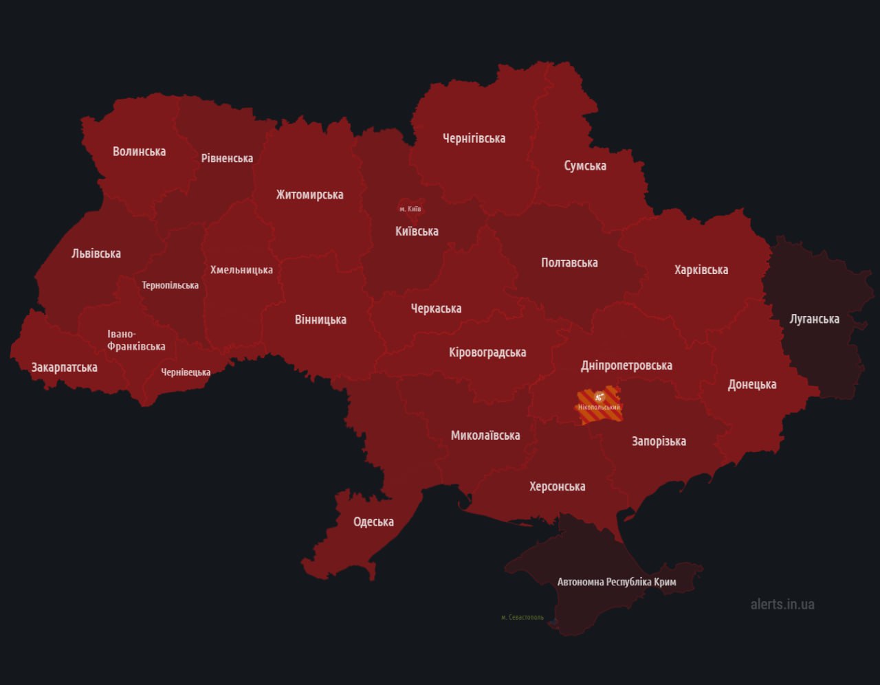12.01 Повітряну тривогу оголошено по всій Україні.