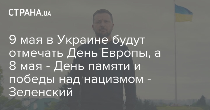 Президент України Володимир Зеленський заявив, що 9 травня тепер відзначатиметься День Європи, а 8 травня - День пам'яті та перемоги над нацизмом у Другій світовій війні.