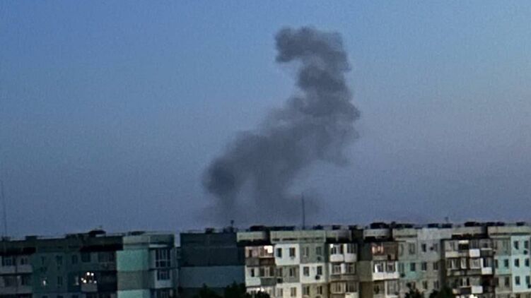 Українські телеграм-канали опублікували фото наслідків вибуху – вогню та стовпа диму.