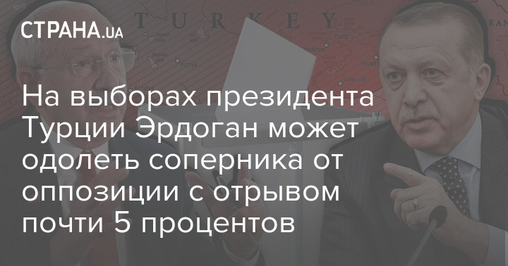 Чинний президент Туреччини Реджеп Тайіп Ердоган може здолати свого суперника від опозиції Кемаля Киличдароглу з відривом майже 5% у другому турі виборів.