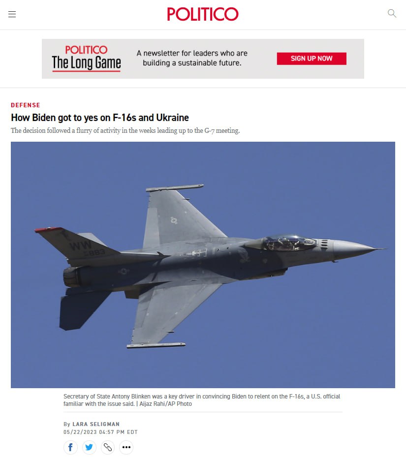 09.58 Союзники Києва ухвалили рішення про передачу Україні винищувачів F-16 задовго до саміту G7 у Хіросімі, пише Politico.