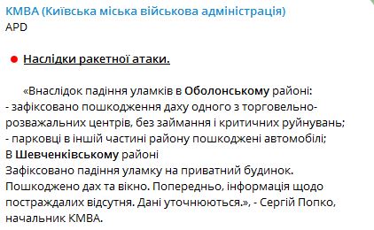 Пізніше з'явилася докладніша інформація про наслідки ракетної атаки в Києві.
