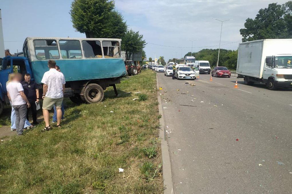 У вівторок, 27 червня, у Вінниці зіткнулися автобус та вантажівка - травмовано п'ятнадцять людей. Одна людина перебуває у тяжкому стані.