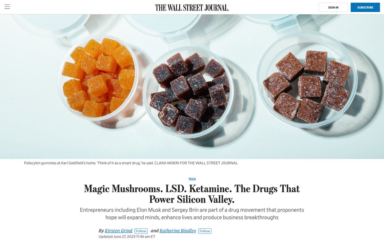Засновник компаній Tesla та SpaceX Ілон Маск приймає кетамін, співзасновник Google Сергій Брін - галюциногенні гриби, а керівництво венчурної компанії Founders Fund, що інвестує в SpaceX та Facebook, влаштовували вечірки з психоделіками.