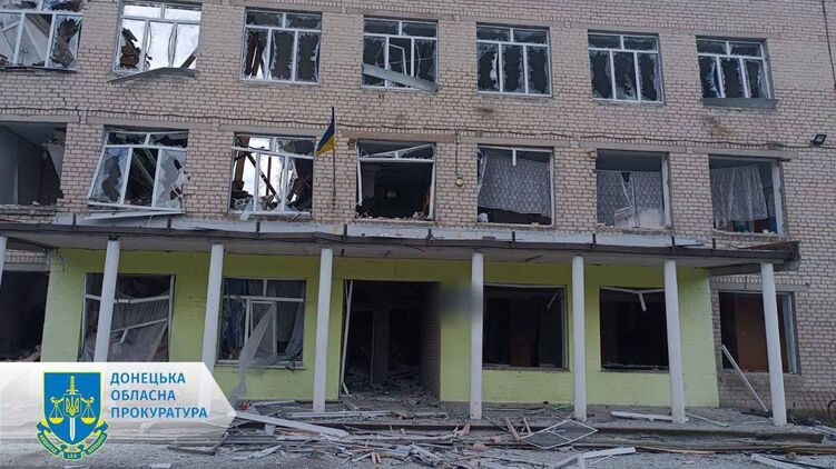 Наслідки обстрілу школи у донецькому селі. Фото: Донецької облпрокуратури